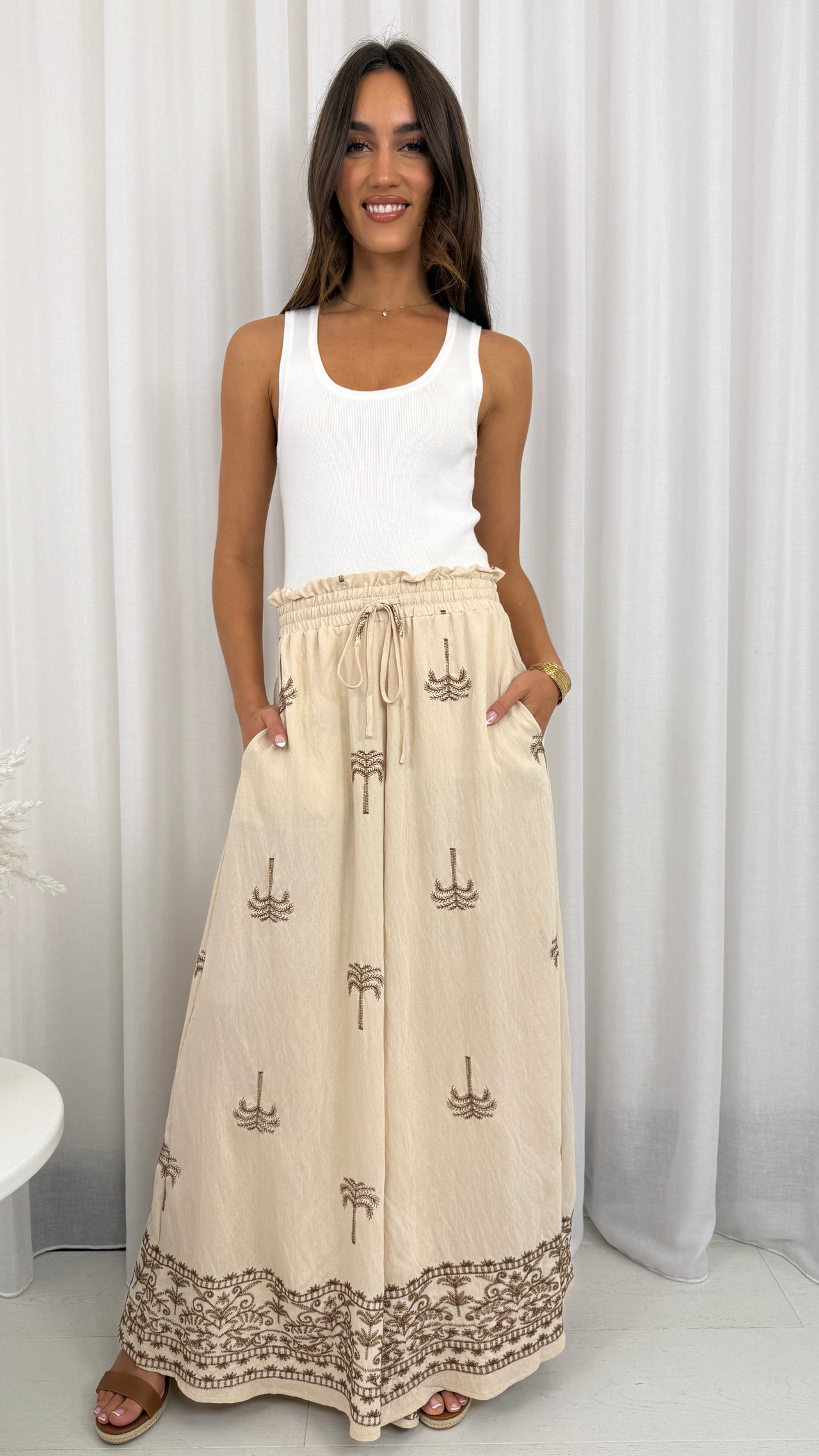 Quick view Choose Options Iris Maxi The Label Reidun Wide Leg Pants - Beige with Pink Palm Print MSRP: Was: Now: $69.00